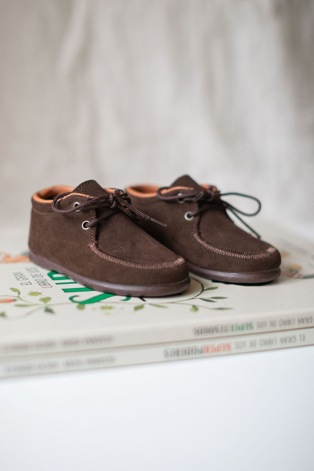 These boots in chocolate colour are designed with children in mind. Split leather, laces and rubber sole. Perfect for active kids!