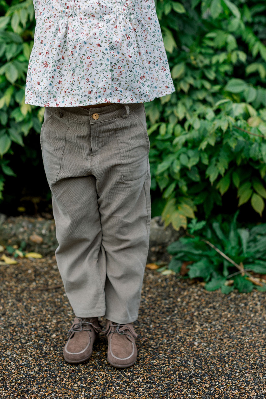 Discover versatility with these stylish corduroy trousers suitable for both boys and girls. Designed with wide legs for comfort and style, these trousers feature two front pockets and charming wooden buttons for added flair. Available in coconut and blue colour. Pair these versatile corduroy trousers with our Felpeto shirt for boys or floral blouse for girls. Product Details: