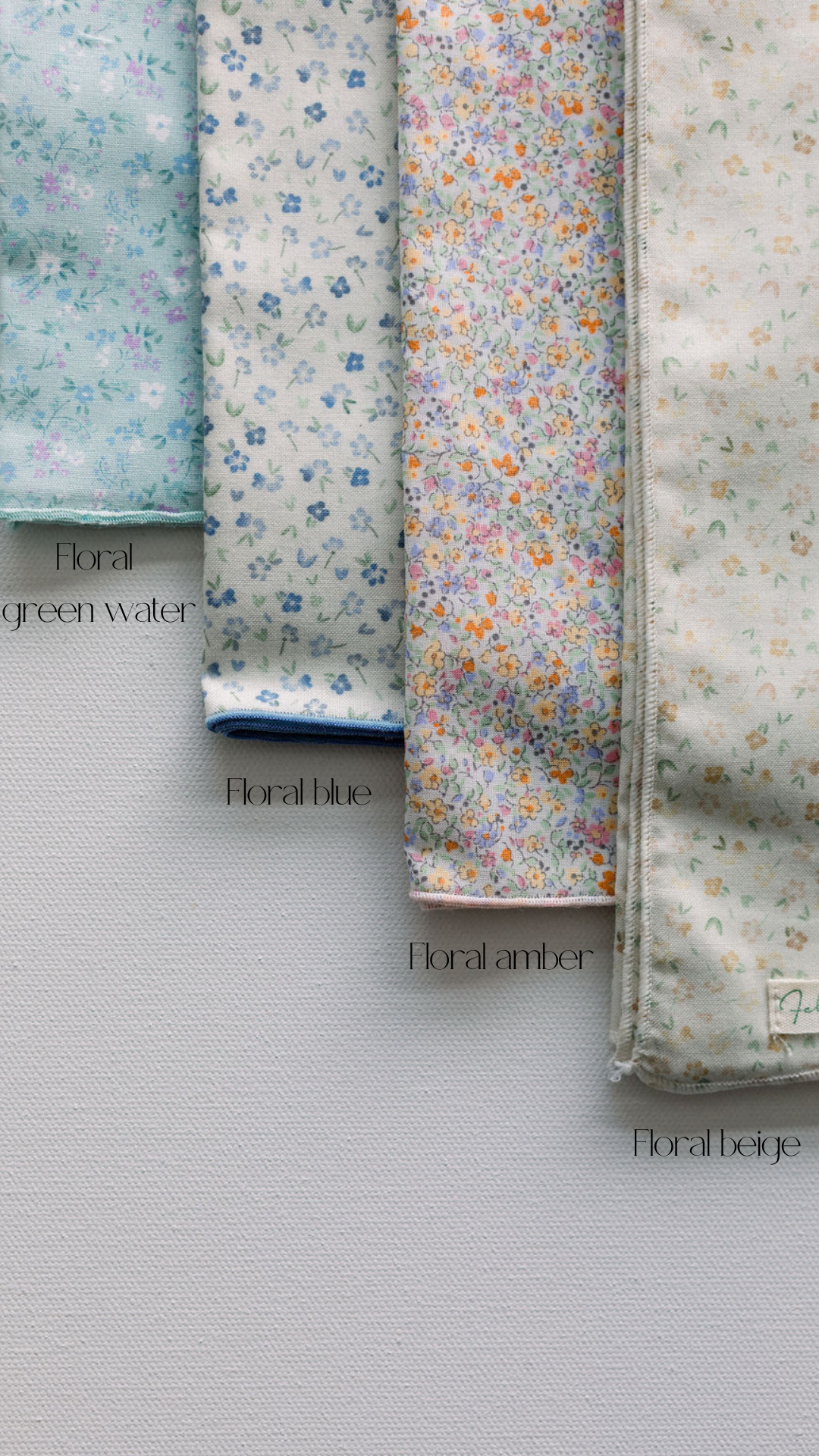 Available in four different floral fabrics: blue, water green, amber and beige.