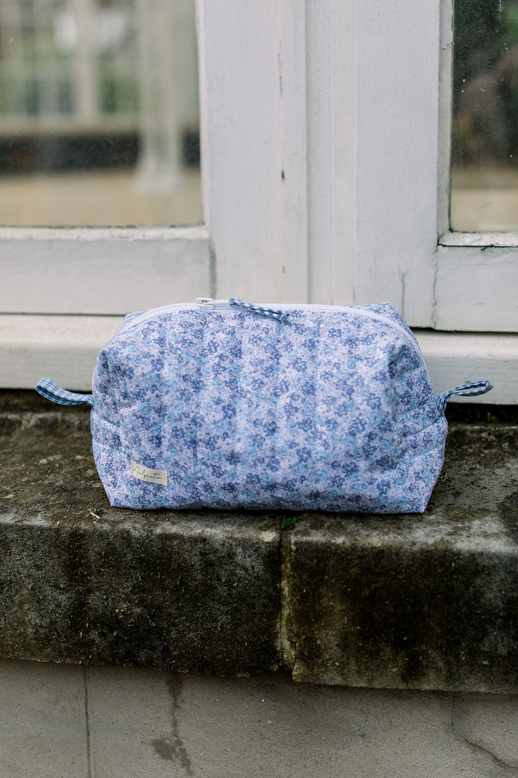 Floral toiletry bag with a matching gingham pattern inside, pairs perfectly with our weekend bag.