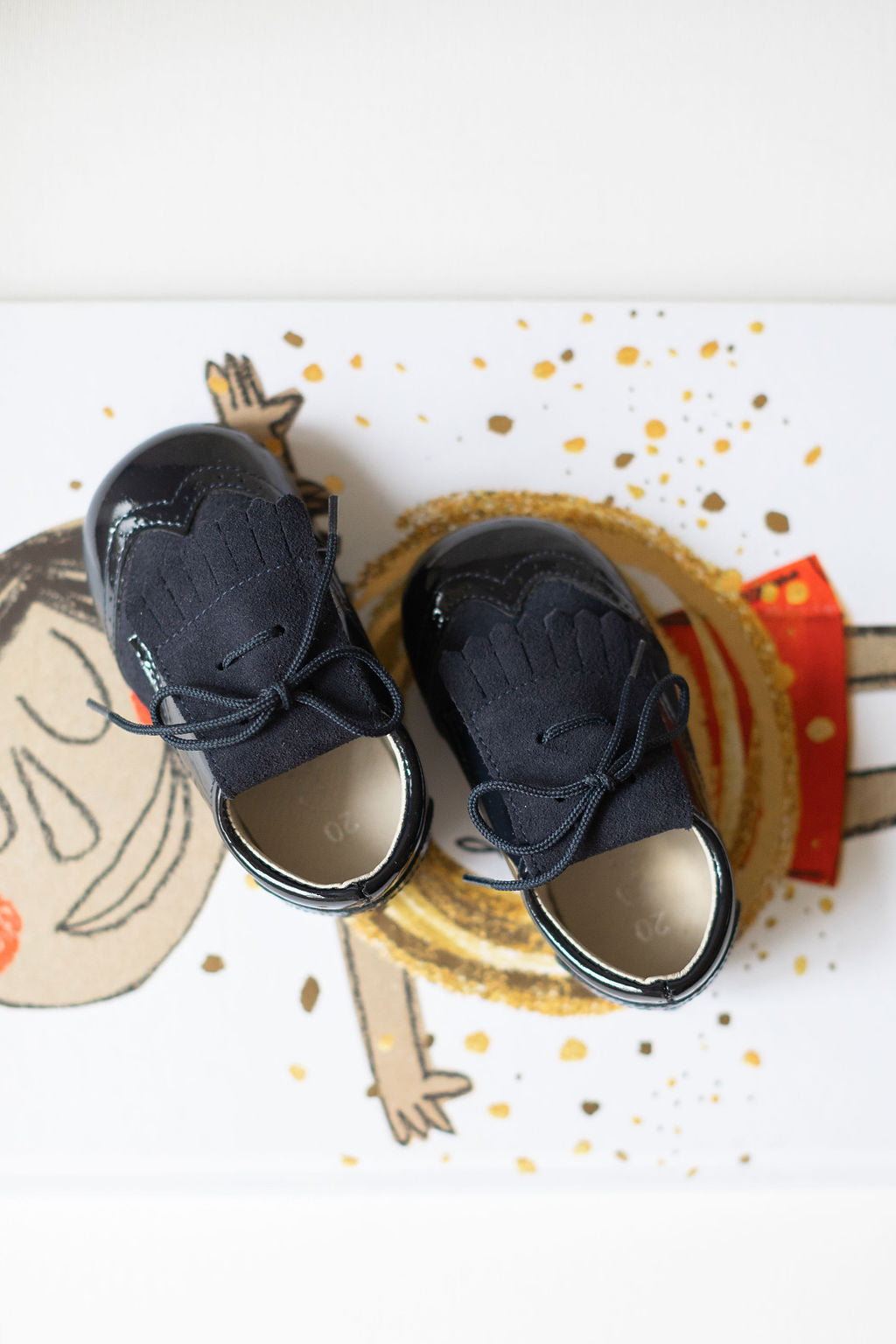 Those shoes are perfect for your little ones. Crafted from high-quality suede and patent leather leather for a luxurious feel, with fringe details. The lace-up fastenings a secure fit while the padded footbed and rubber sole ensure lasting comfort.