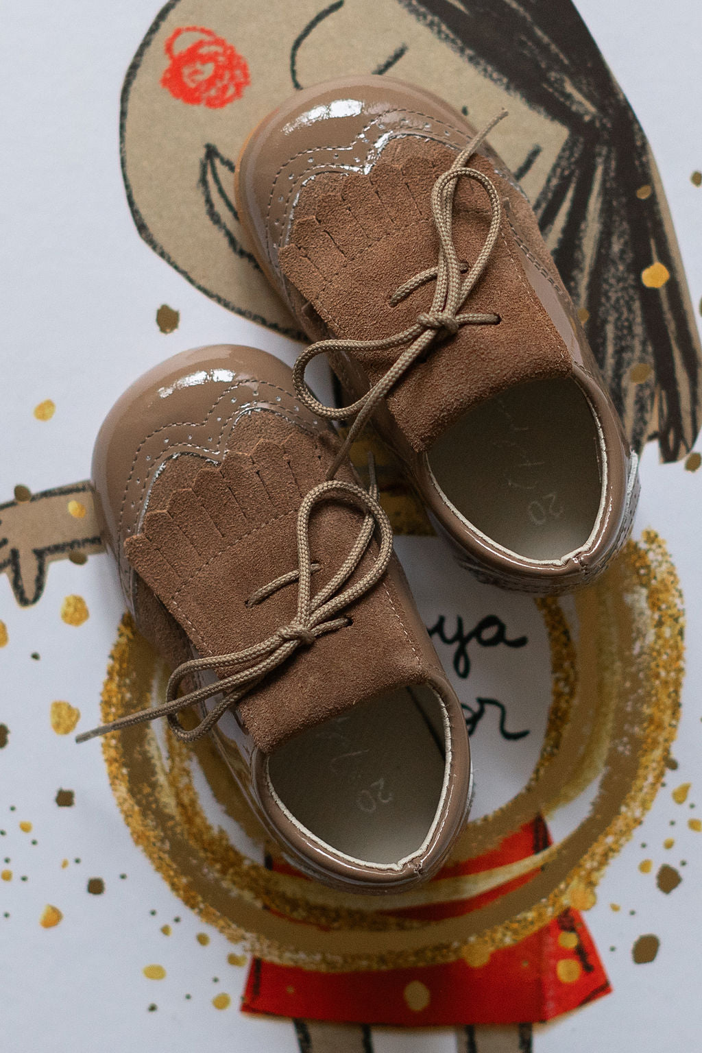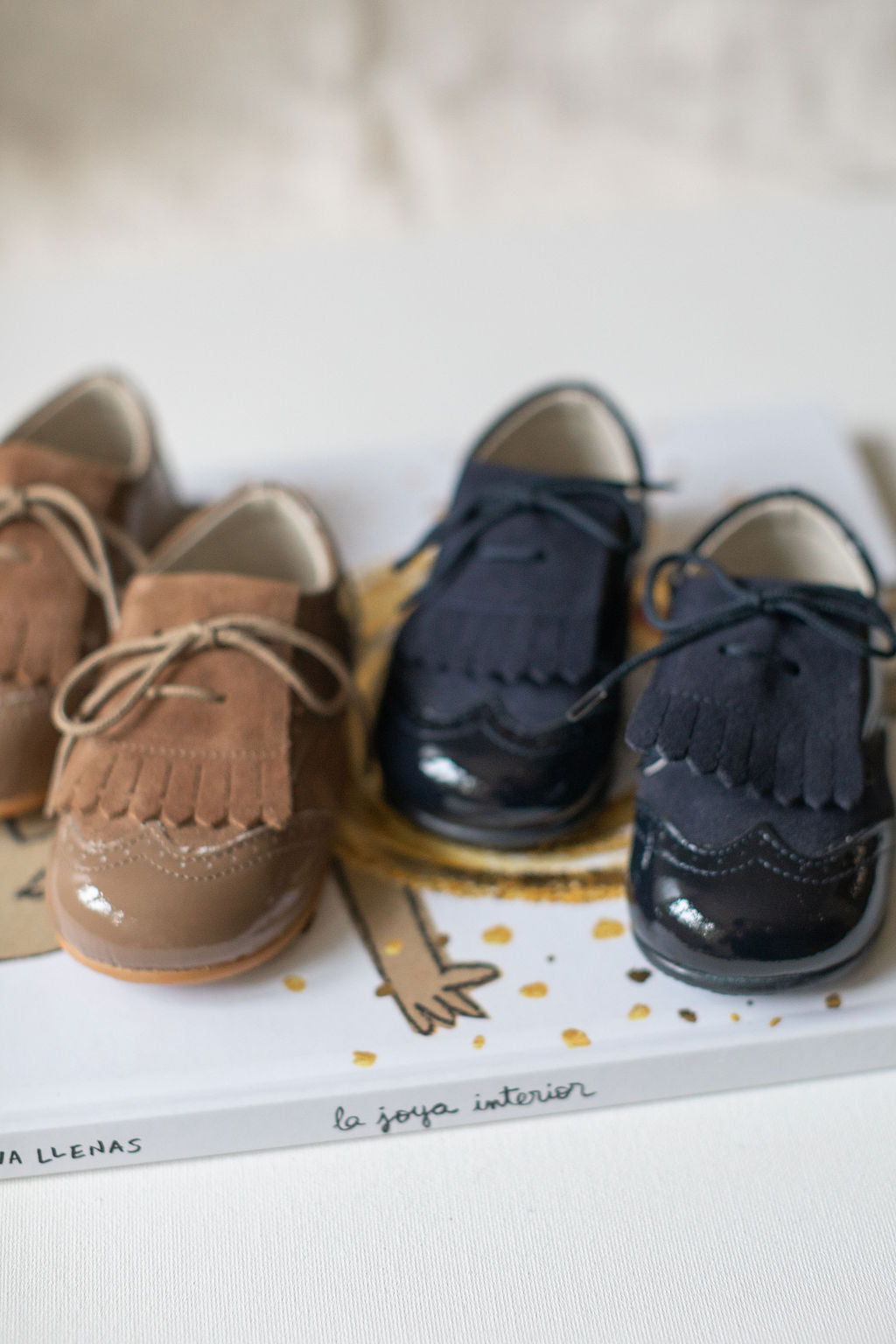 Those shoes are perfect for your little ones. Crafted from high-quality suede and patent leather leather for a luxurious feel, with fringe details. The lace-up fastenings a secure fit while the padded footbed and rubber sole ensure lasting comfort.