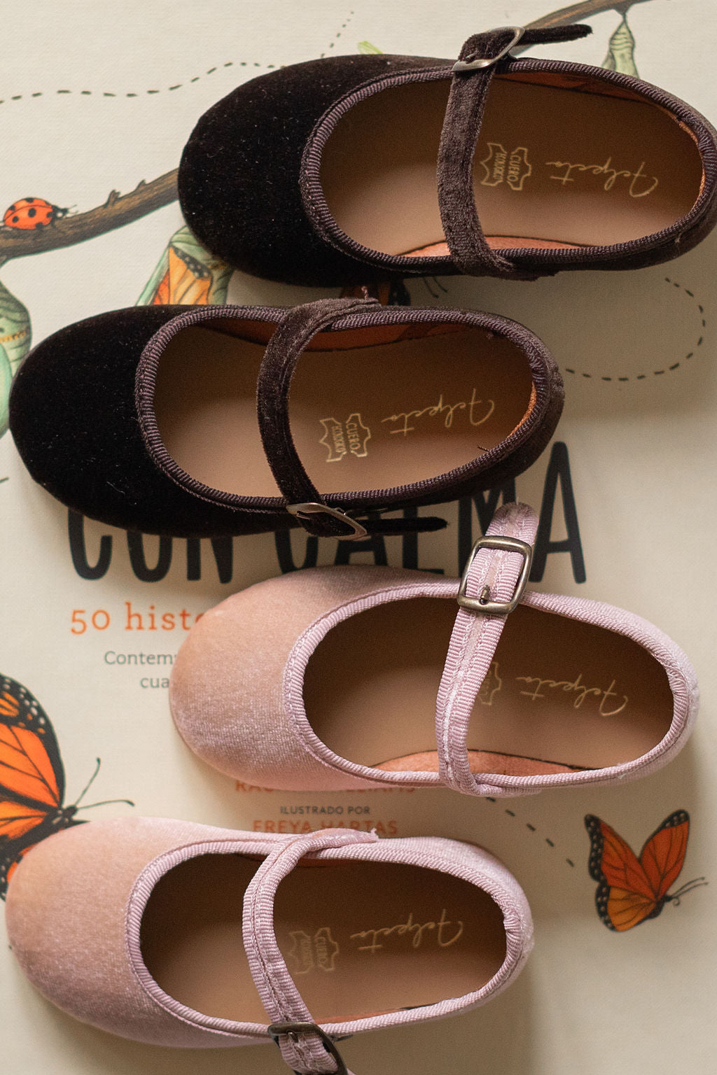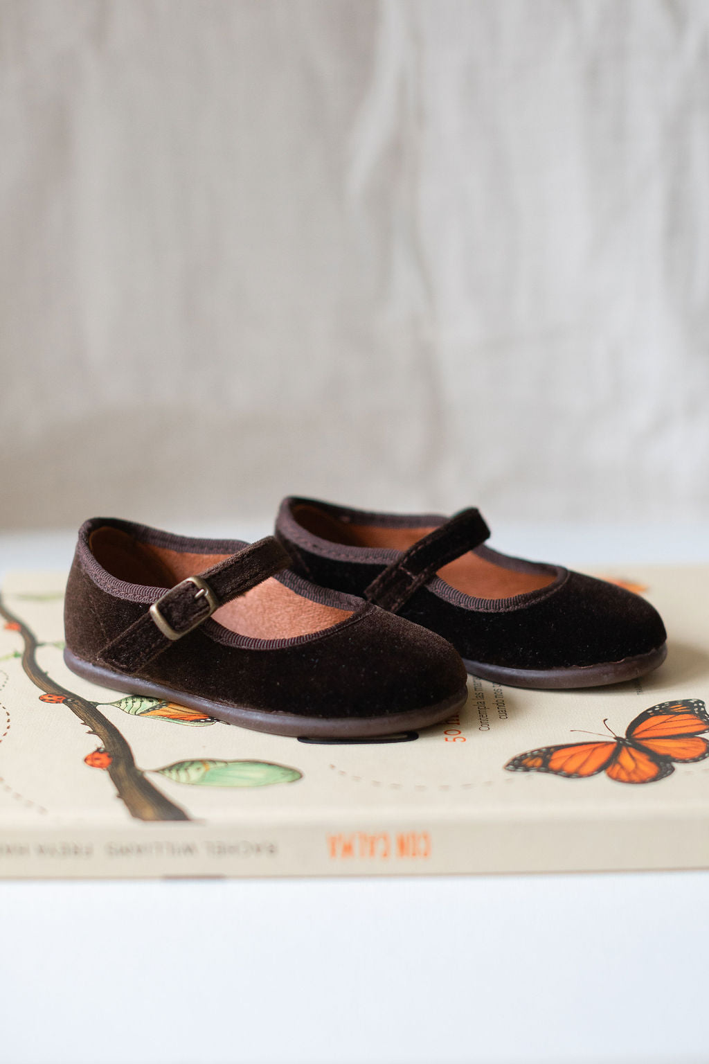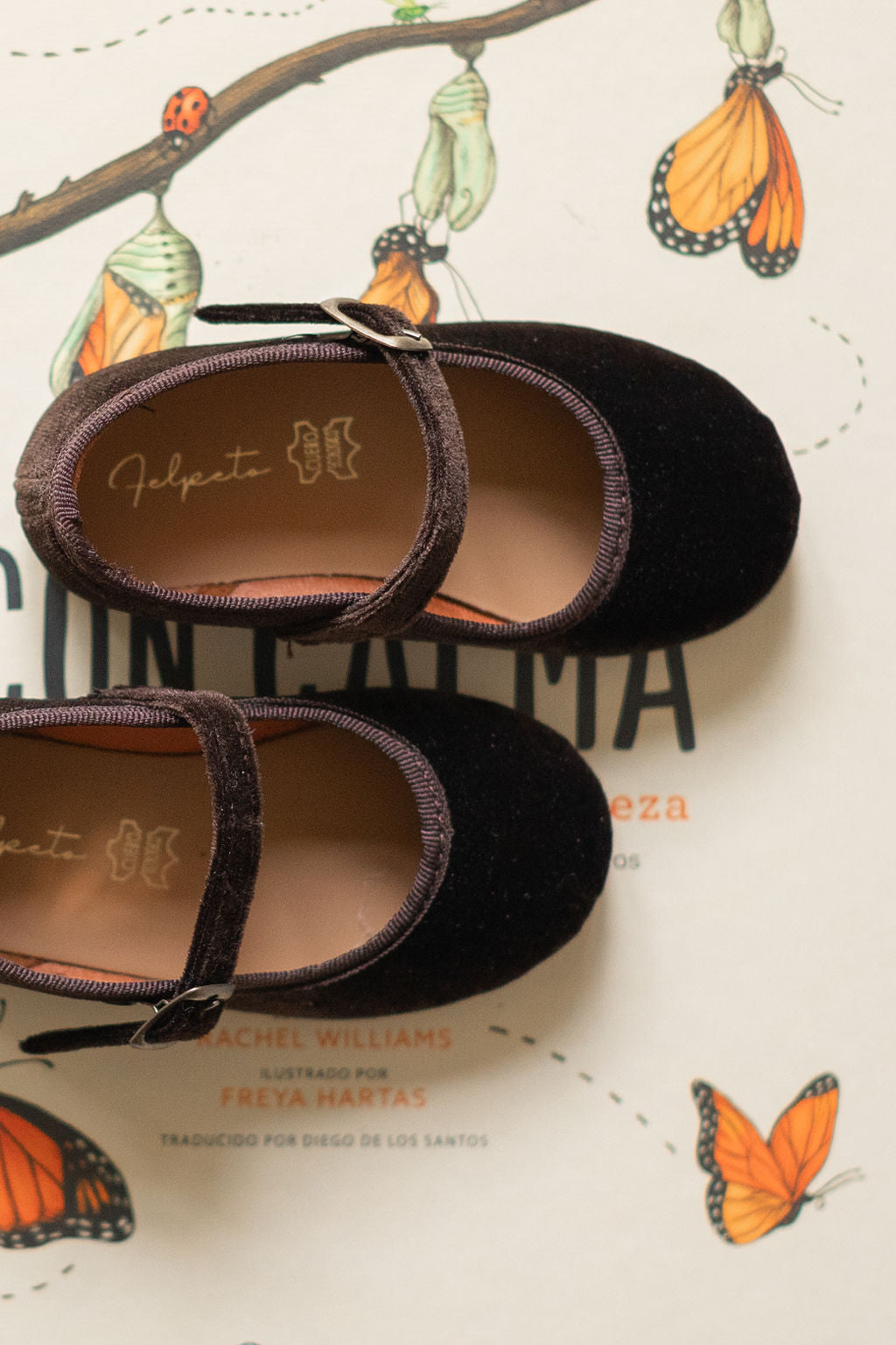 These linen Mary Jane shoes were designed with comfort and classic style in mind. Crafted with velvet and inner leather for durability, secured by a thin strap detail which fastening on the side. Perfect for any little one.