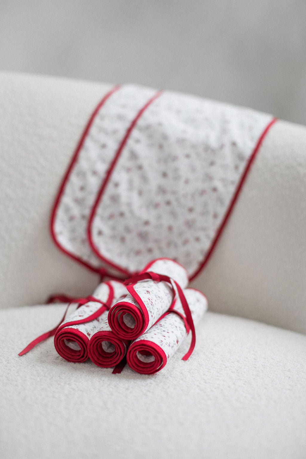 This baby muslin, made from 100% organic cotton, is perfectly sized for use as a burp cloth. Simply roll it up and secure it with the attached lace.