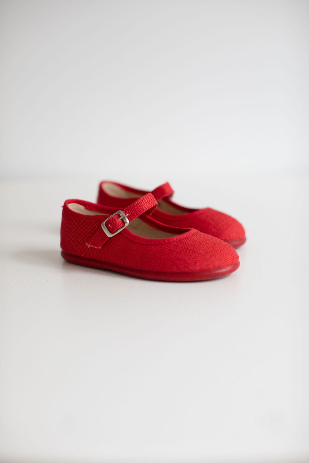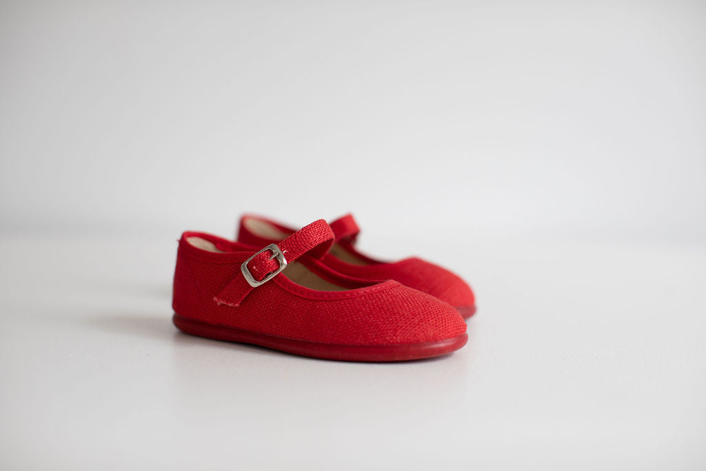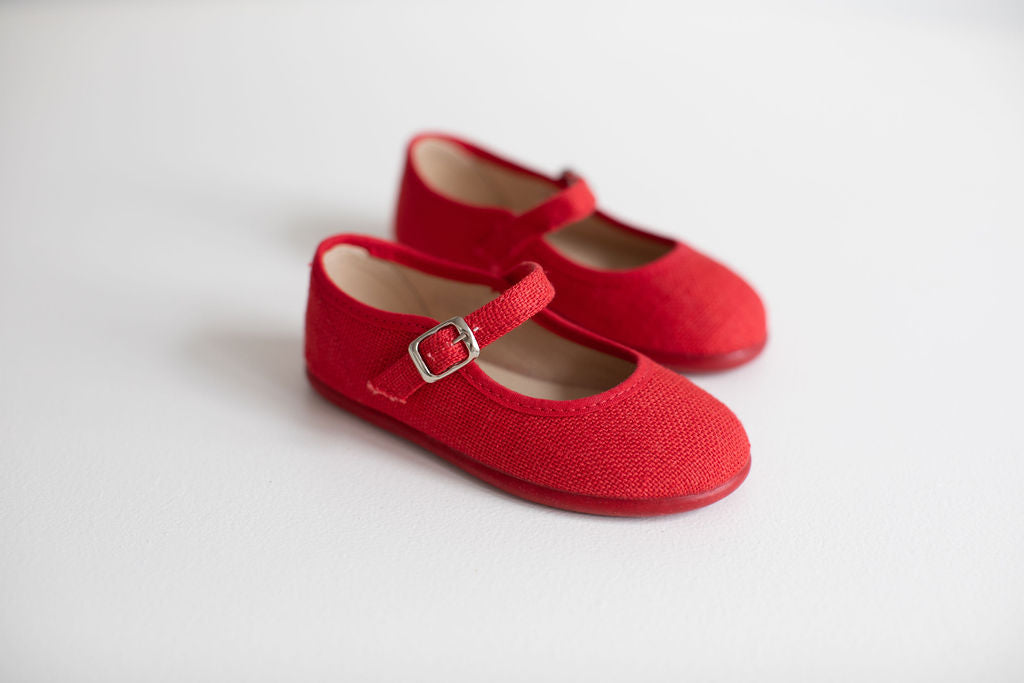 These linen Mary Jane shoes were designed with comfort and classic style in mind. Crafted with linen and inner leather for durability, secured by a thin strap detail which fastening on the side. Perfect for any little one.