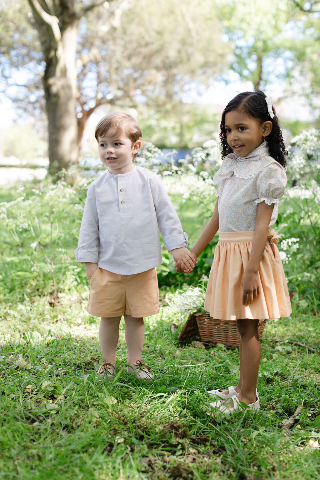 Versatile and easy to style, we recommend pairing it with our peach or lead blue shorts and menorquinas sandals or linen shoes.
