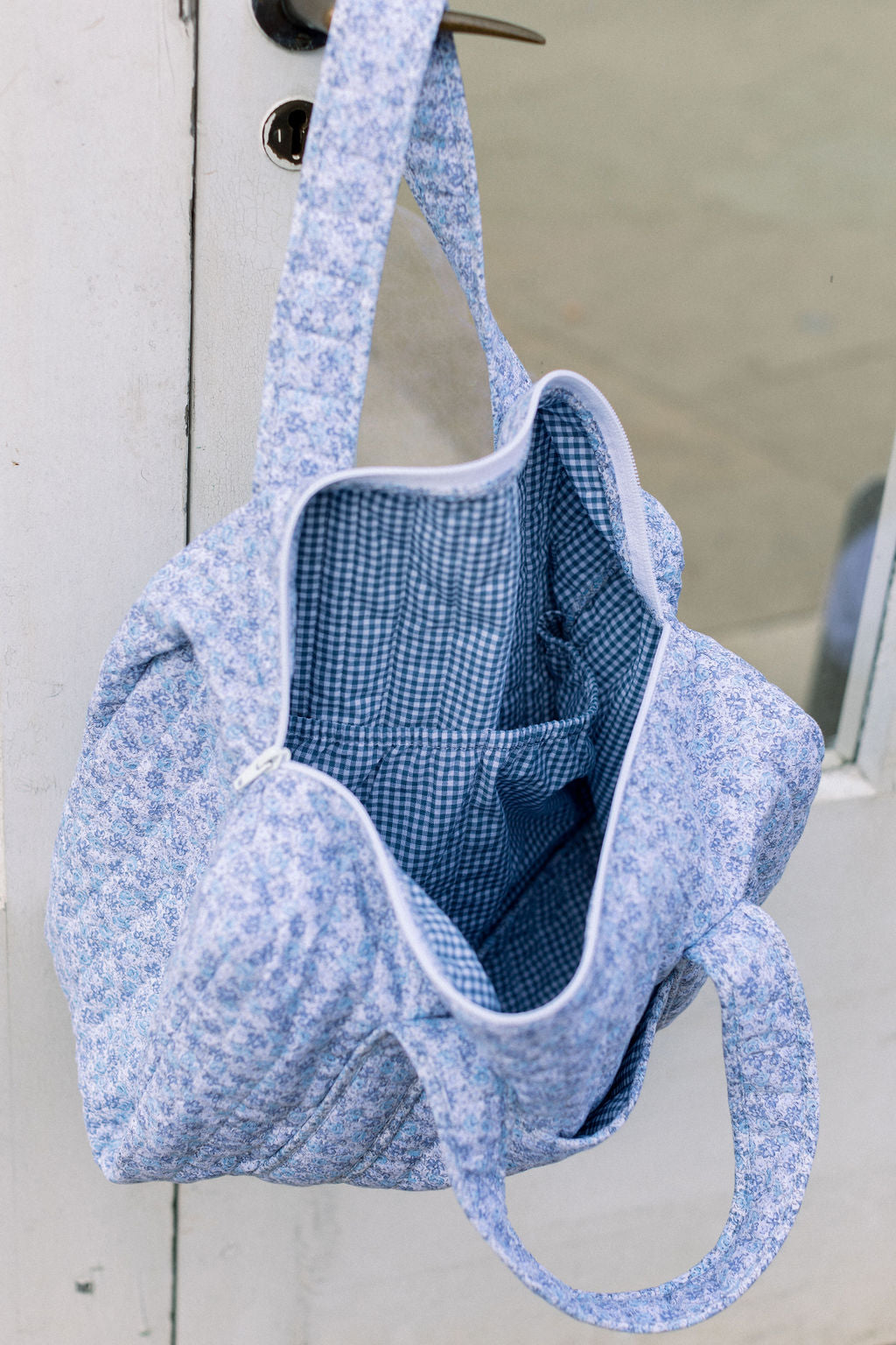 Introducing our weekend bag, thoughtfully designed for both you and your baby. This bag features a beautiful floral exterior with an interior adorned in lovely gingham patterns, adding a touch of elegance to your travels.